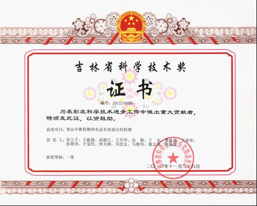 | 发证机构: | 吉林省科学技术奖 | 发证时间 : | 2012-03-01 |