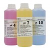 在pH计经销商处一般还有用聚乙稀塑料瓶瓶装的pH标准缓冲溶液销售。它和用pH缓冲试剂自己配制的缓冲溶液比较,由于它其中添加了显色剂和防腐剂,因此不同pH值的缓冲液有不同的颜色,使用时不易搞错,并且在常温下保存不会发霉变质,保存期可长达一年,因此使用特别方便。有pH4.00、pH6.86、pH7.00、pH9.18、pH10.01五种,并有500ml大瓶和50ml小瓶二种规格。