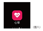 心率:将手表正确佩戴好,并保持静止心态,切换到心率界面(图八),大概20秒左右可以测试出心率数据,如果在测试过程中有晃动手臂,或者佩戴有漏光,会影响测试准确度