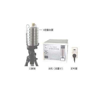 整个仪器是由撞击器、主机(流量计)、定时器、三脚架组成。撞击器是6层有微小孔眼的铝合金圆盘。圆盘下放琼脂平皿,每圆盘间有密封胶圈,在通过三个弹簧挂钩把圆盘牢固地联在一起。每个圆盘上有400个成环行排列、逐层减小、尺寸精确的小孔,标准采样流量为1立方呎(28.3L/min)。当含有微生物粒子的气流进入最上层的采样口后,由于气流的逐层增高,不同大小的微生物粒子按空气动力学特征分别撞击在相应的琼脂表面上。捕获在各级上的粒子大小范围是由该级孔眼的气流速度和上一级的粒子截阻率而决定的。第1、2级类似人的上呼吸道捕获的粒子,第3~6级类似人的下呼吸道捕获的粒子,这就相当程度上复制了这些粒子在呼吸道的穿透作用和沉着部位。