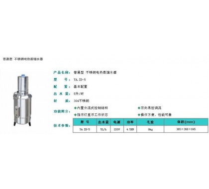 ZD-5 型不锈钢电热蒸馏水器
