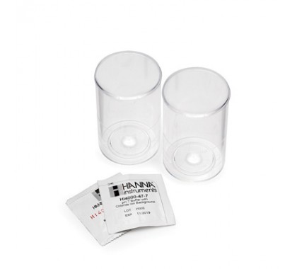 可将pH4或者pH7含有氯离子的酸度标准缓冲液加入50 mL去离子水或蒸馏水中,并将传感器组件小心地浸入溶液中。