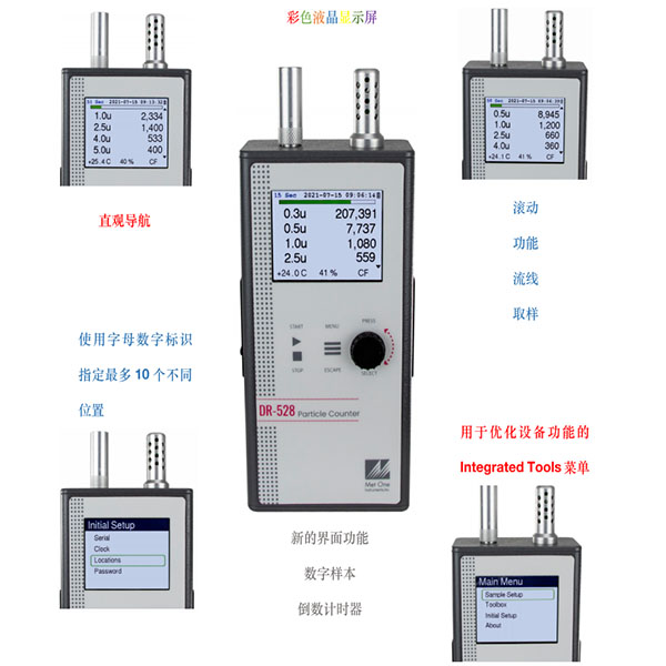 与Met One Instruments,Inc 见面的是手持式粒子计数器,型号 DR-528。此款粒子计数器在功能和易用性方面进行了优化,具有2.8英寸TFT全彩色液晶显示屏,使 准确的测量读数和操作比以往任何时候都更加轻松。此功能齐全的粒子计数器是任何洁净室或受控环境监控应用的完美补充。